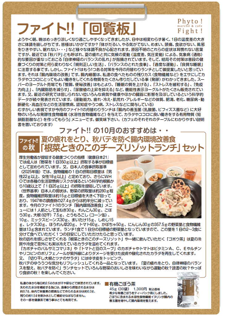 『ファイト!!の秋ランチ根菜ときのこのチーズリゾットセット』