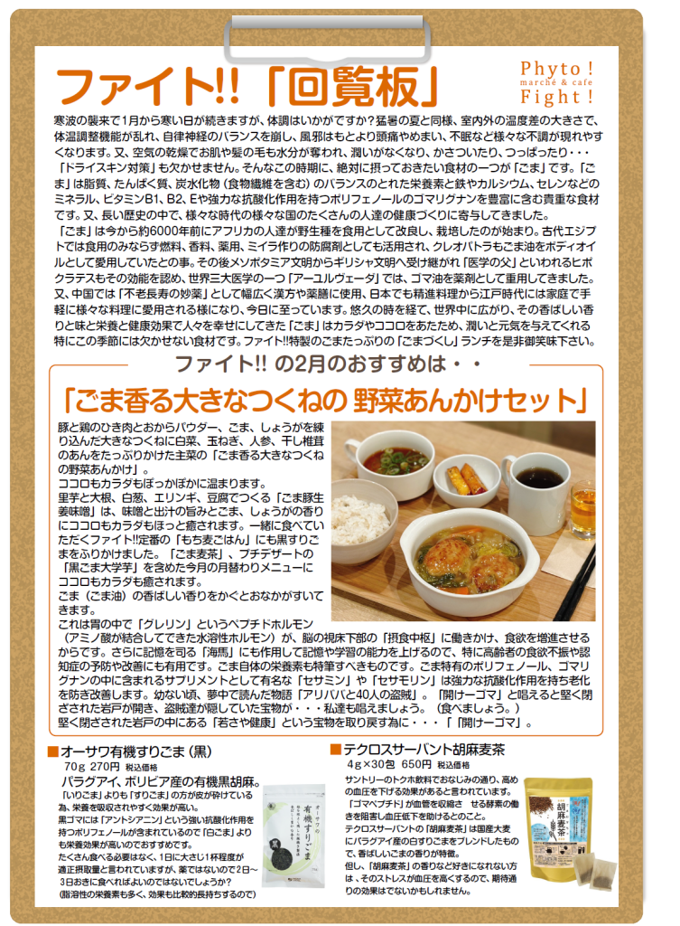 今月は香ばしくコクのある栄養の宝庫『ごま』を主役にしました。